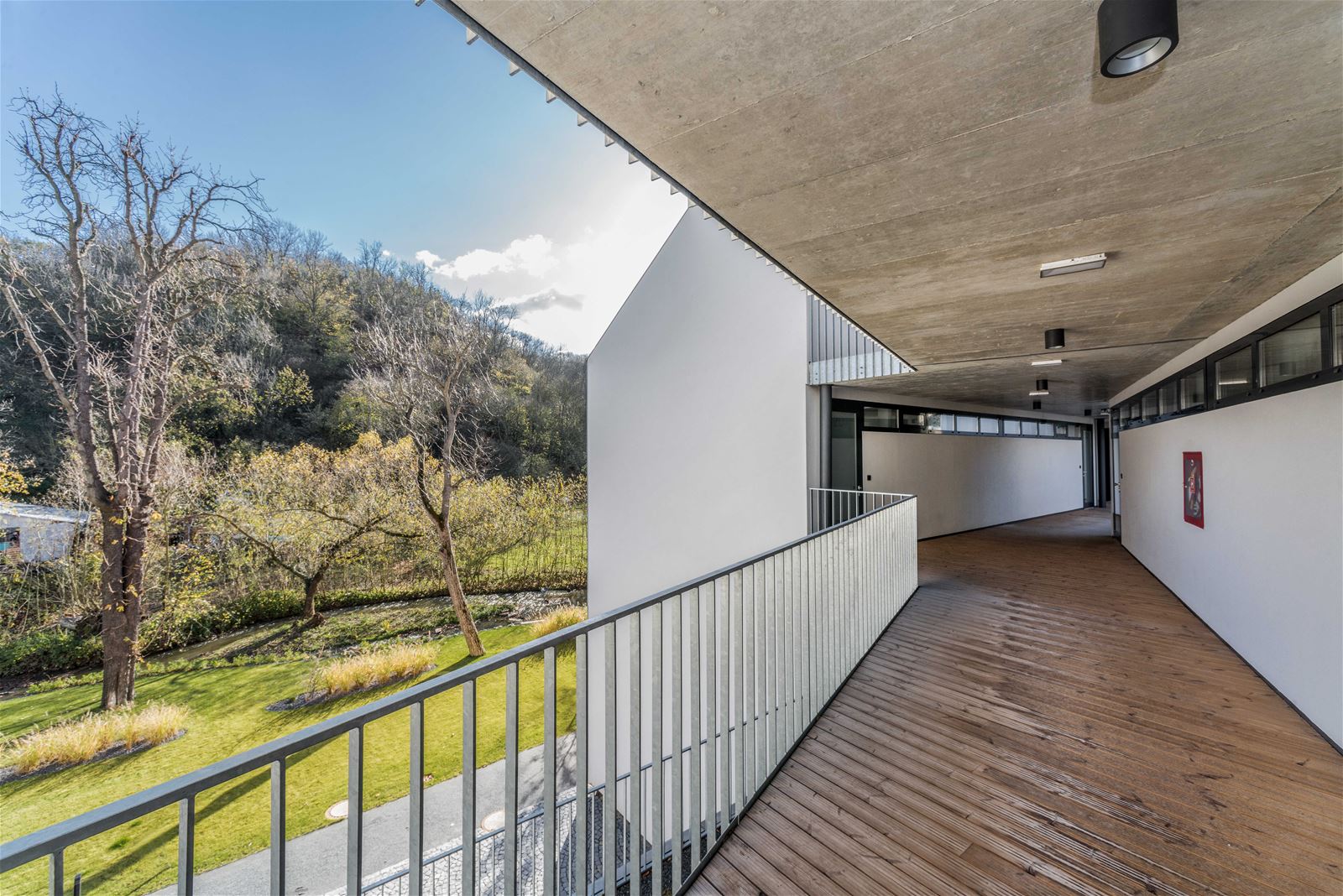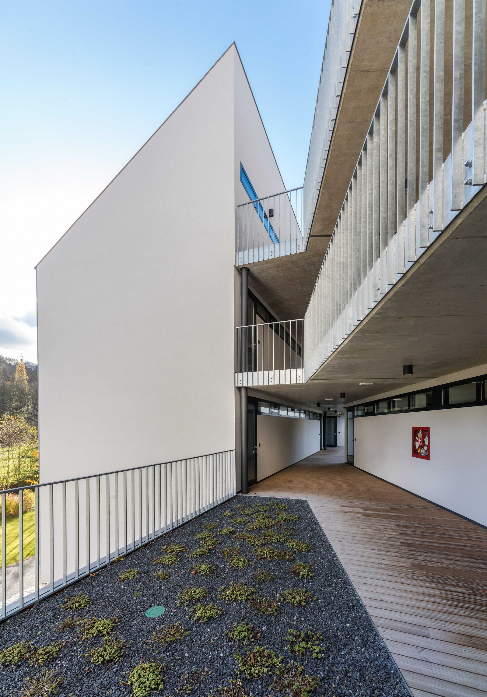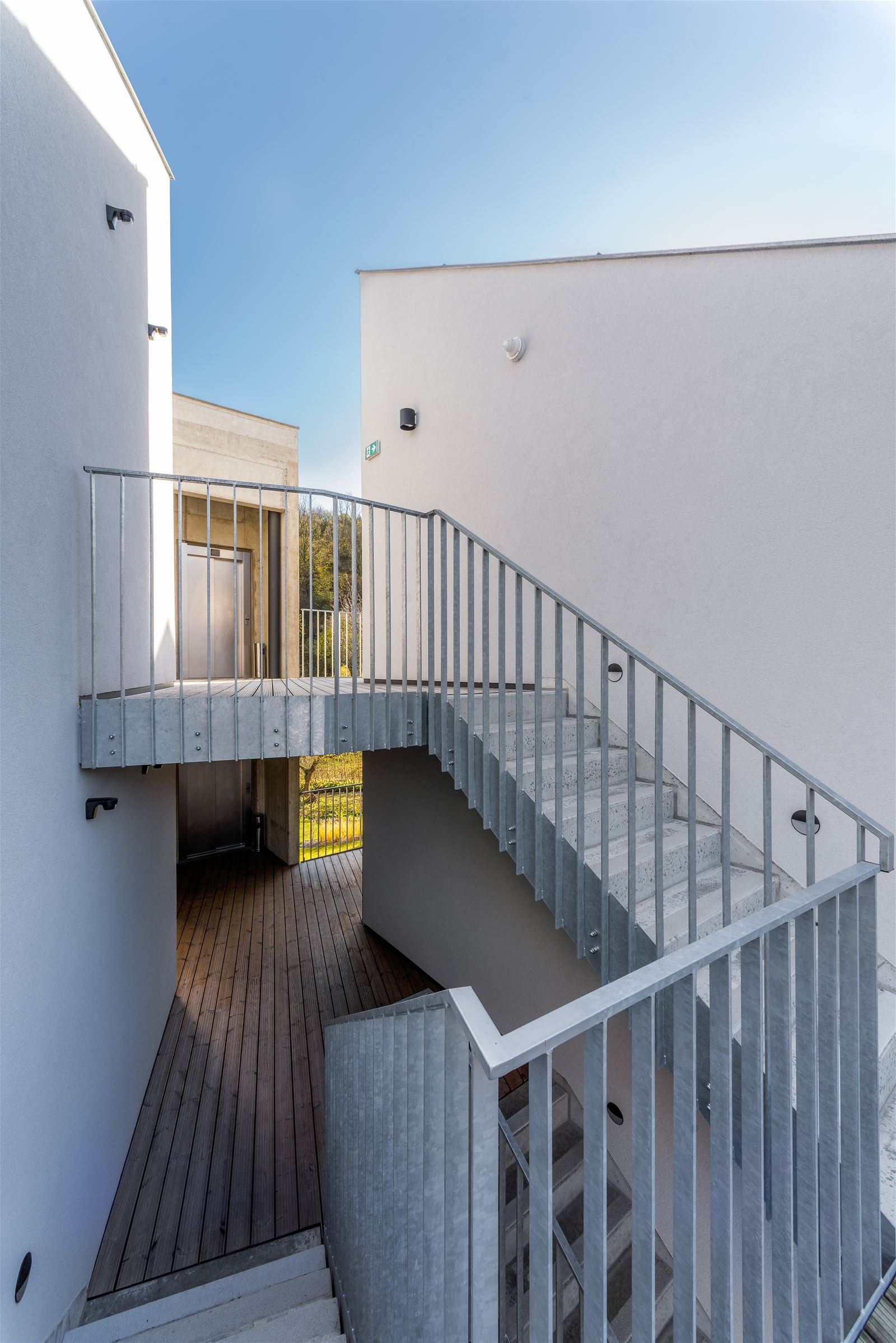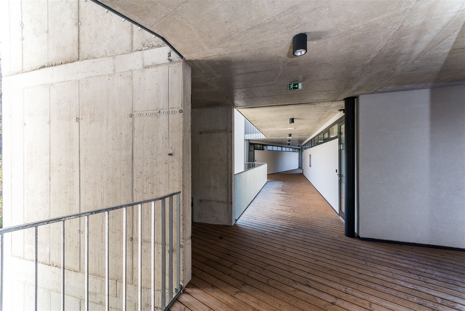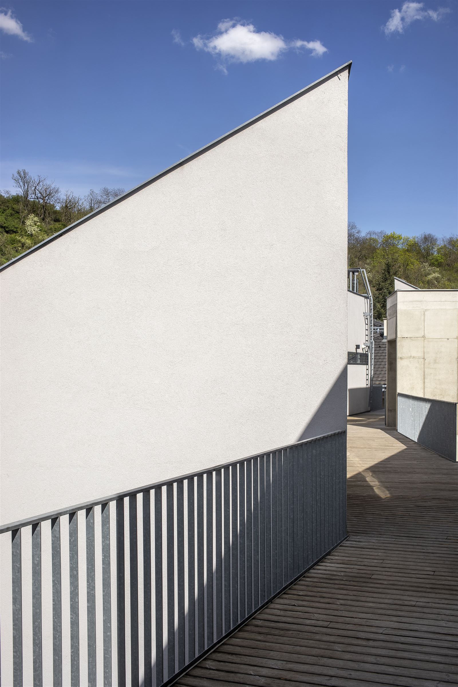 Pavlače vynesené na isonosnících si zachovávají subtilnost a pohledovost konstrukčního betonu. Objekt je navržen jako železobetonový monolit, včetně konstrukce šikmých střech. Řešení přispívá k tepelné stabilitě a zachovává příjemné klima v podkroví.