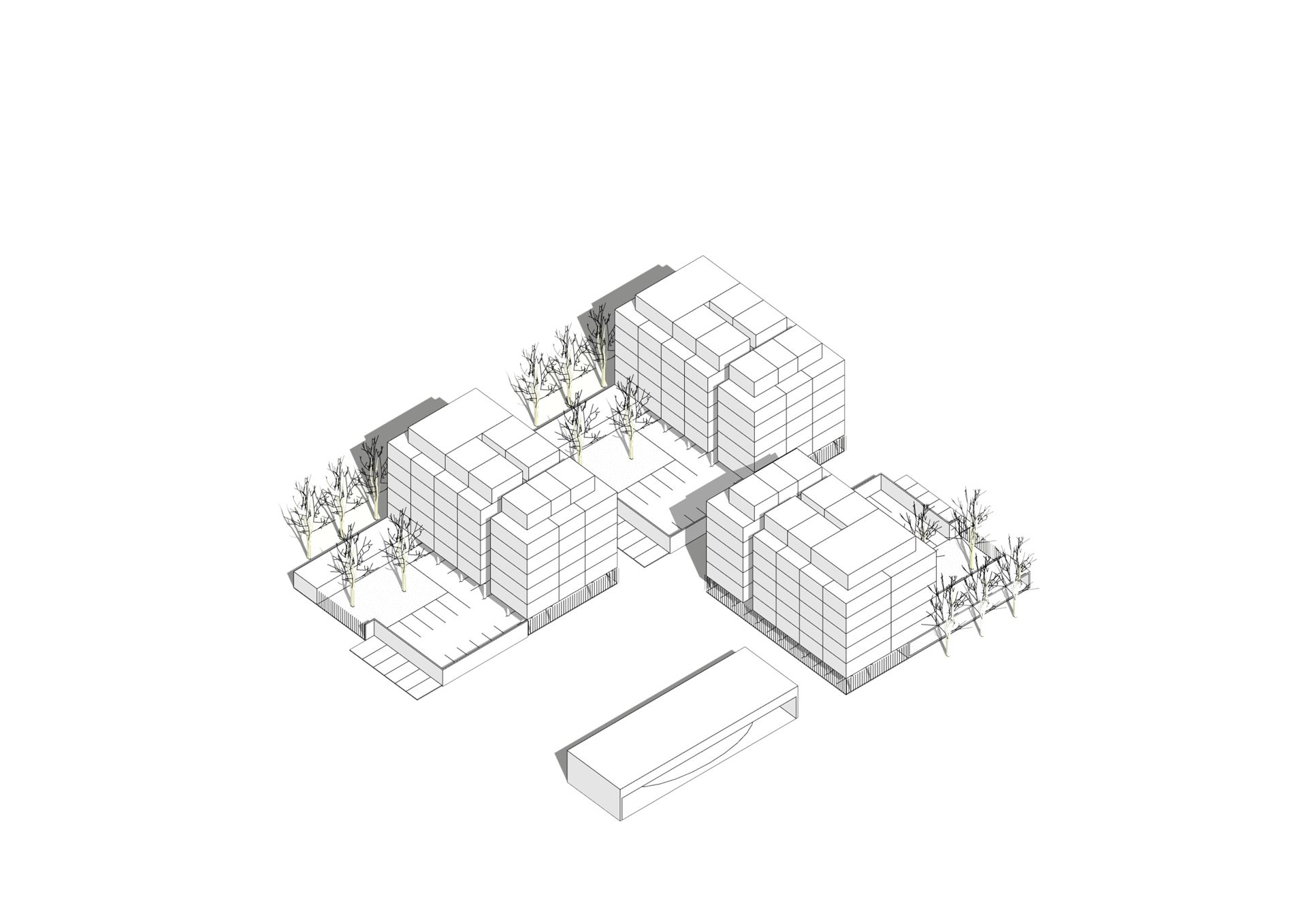 Základní kompozice území vytváří pevnou osnovu budoucí podoby této části města. Nově vedená Nádražní ulice zlepšuje prostorové vztahy před nádražní budovou, formuje důležitou městskou osu a zároveň vymezuje prostor pro autobusové stání a parkovací dům. Významným prvkem návrhu je krajinný pás vedený na ose nádraží – parkovací dům P+R – řeka Vltava, který řeší komplikované rozhraní mezi městem, dopravní infrastrukturou a rozvojovou lokalitou. Území je organizováno do systému bloků, jejichž strukturu určuje středová osa paralelní s Nádražní ulicí.