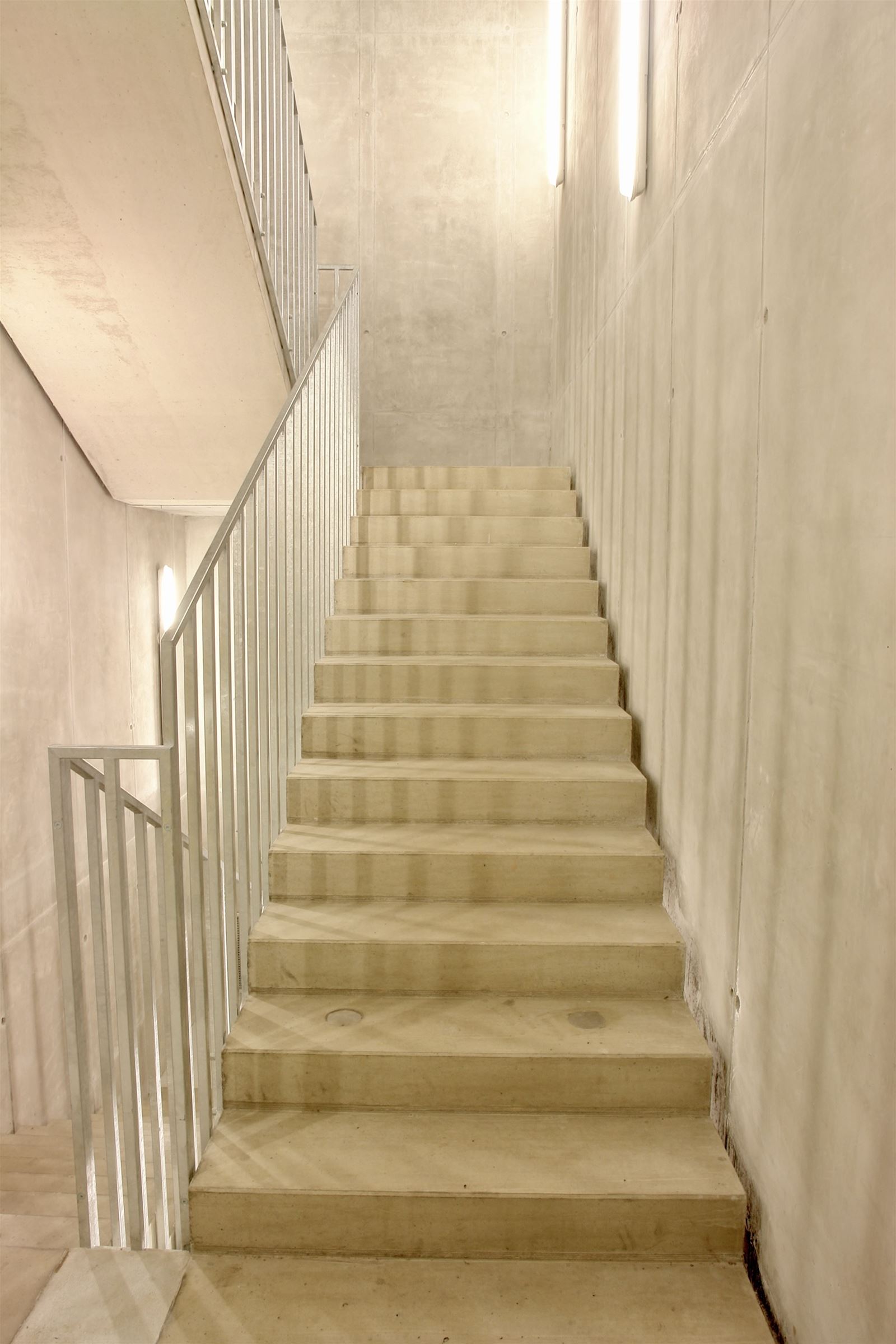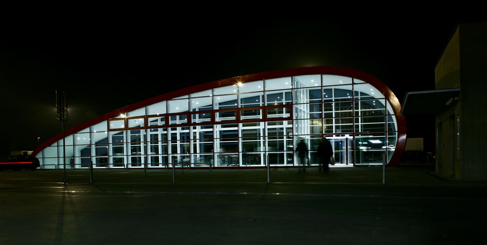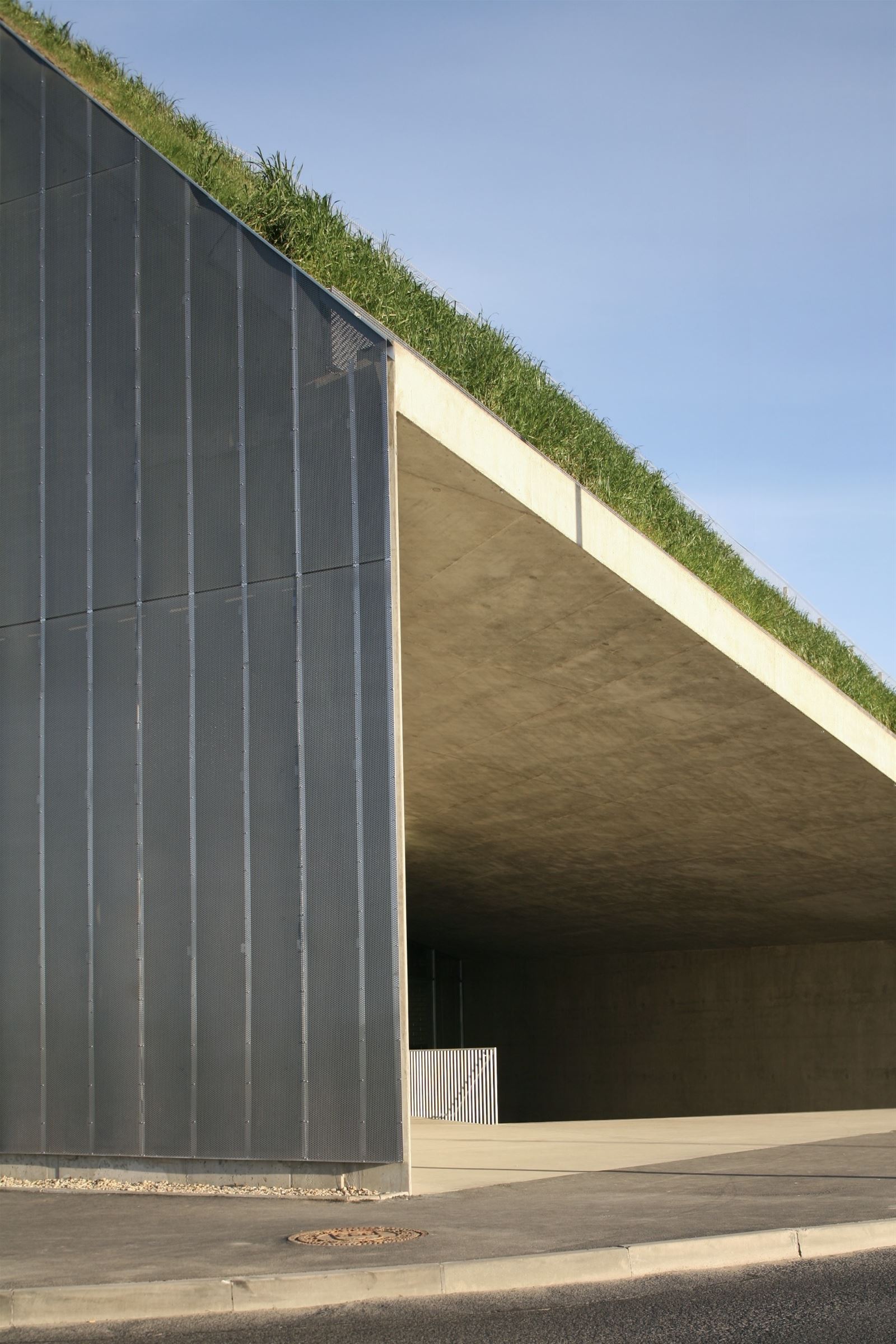 Konstrukce objektu je navržena jako montovaný železobetonový skelet v modulu 12 × 17 m s předepínanými průvlaky a filigránovými stropy. Založení je řešeno vrtanými pilotami vetknutými do únosné vrstvy břidlic. Svislá komunikační jádra a vstupní objekt, zapuštěný do zemního tělesa, jsou provedeny z monolitického pohledového betonu. Zemní valy jsou vytvořeny z místní vytěžené zeminy ukládané do geotextilních obalů a vyztužené ocelovými sítěmi. Severní a jižní fasáda jsou obloženy předsazenými dílci z perforovaného plechu, které ponechávají čitelnou konstrukční logiku objektu i rozhraní mezi opěrnými stěnami a zemními valy. Napojení betonové střešní parkovací plochy na zelené valy a svislou fasádu je řešeno jako integrovaný systém svodidla a zábradlí z pozinkovaných plotových dílců.