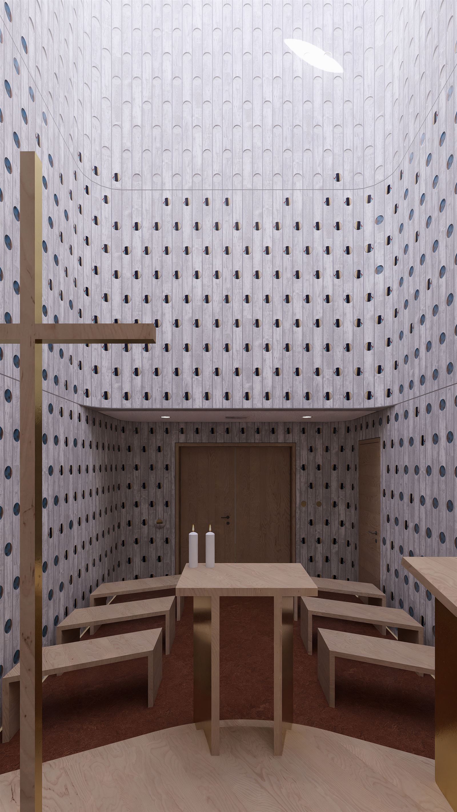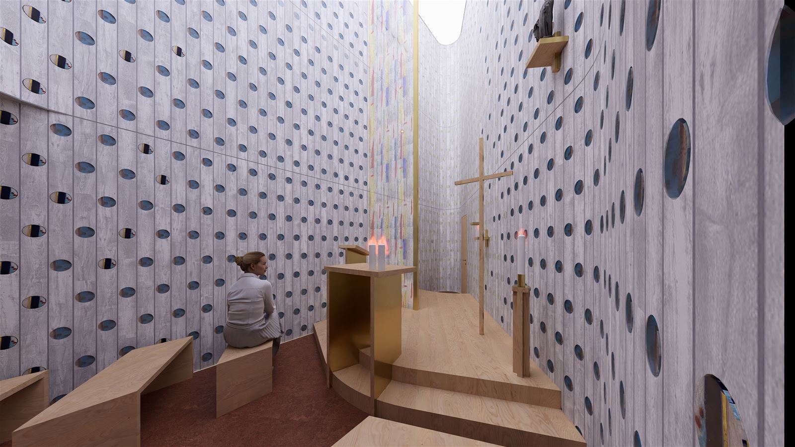 Pomyslným srdcem celého areálu je unikátní kaple sv. Ludmily navržená jako tiché centrum budovy. Propojuje všechny směry, jak prostorově, tak symbolicky. Návrh interiéru se skleněnými prvky od architekta Davida Vávry je intimní a přitom plně funkční. Světlo, struktura i akustika odpovídají účelu prostoru. Stěny kaple pokrývá více jak pět tisíc barevných skleněných čoček, které jsou součástí donátorského programu.